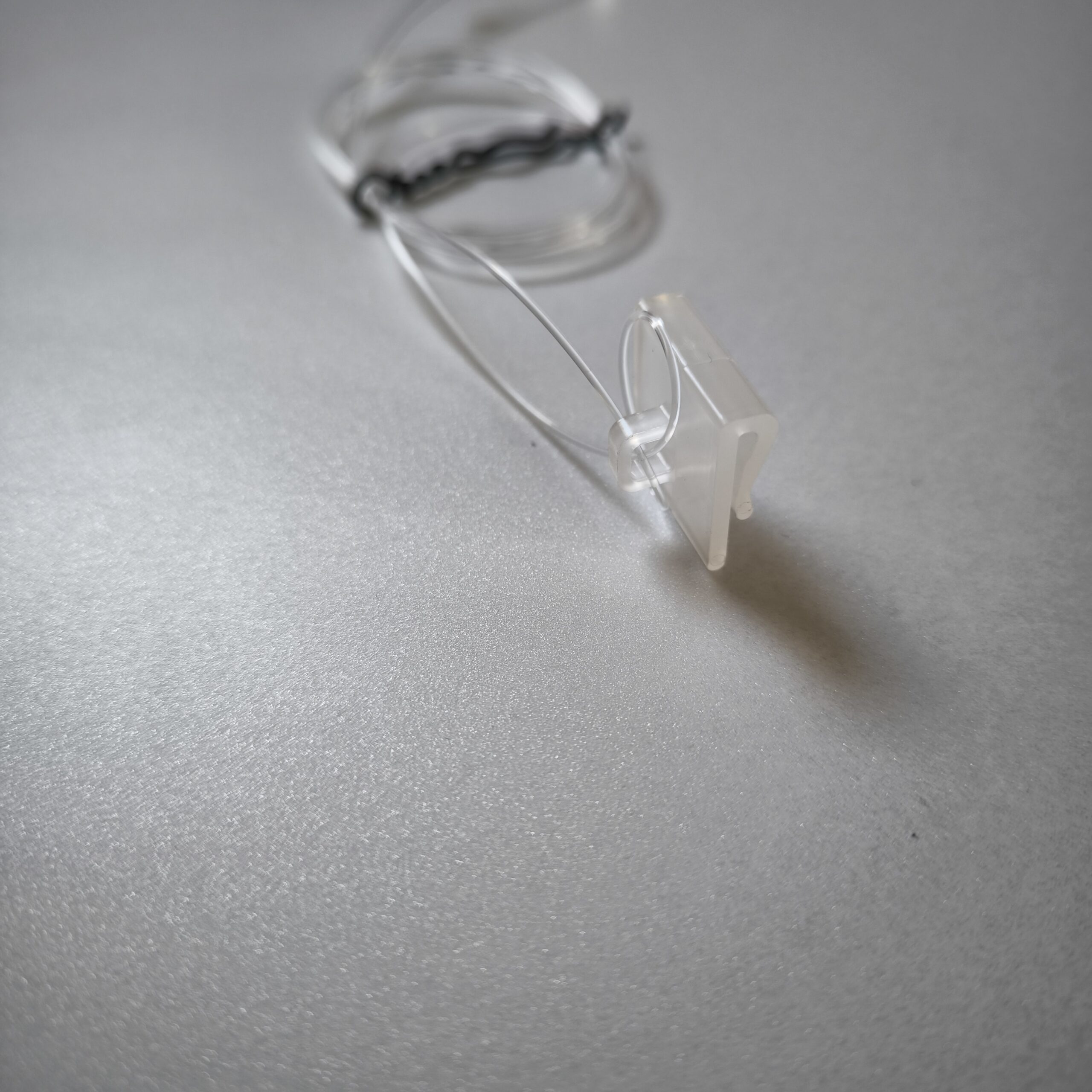 2 Clip à mettre sur rail de faux plafond avec fil de nylon ajustable en longueur et en butée avec un briquet grâce aux tube alu à sertir ou mettre en butée.
